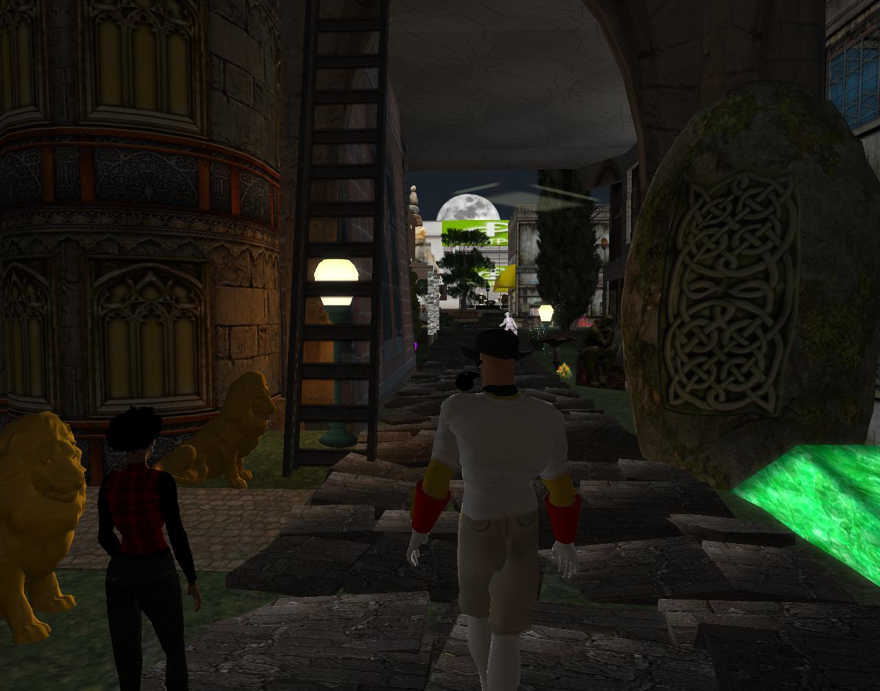 Welp, there she goes again, thinks Newt, sipping on a recently procured nice cool lemonade drink courtesy of a boy named Bart. Back into the tunnel. Guess I better get back to the home base myself, start working on that skybox and maybe the rezzing of that larger version of Howl’s Moving Castle I have in my inventory. Must not forget the Yellow Guy. Or the Red Man or the Green Dude or the Blue Boy for that matter. “Frank’s Moving Mountain” which is kind of the same as “Howl’s Moving Castle” is a way to keep moving forward on that subject.