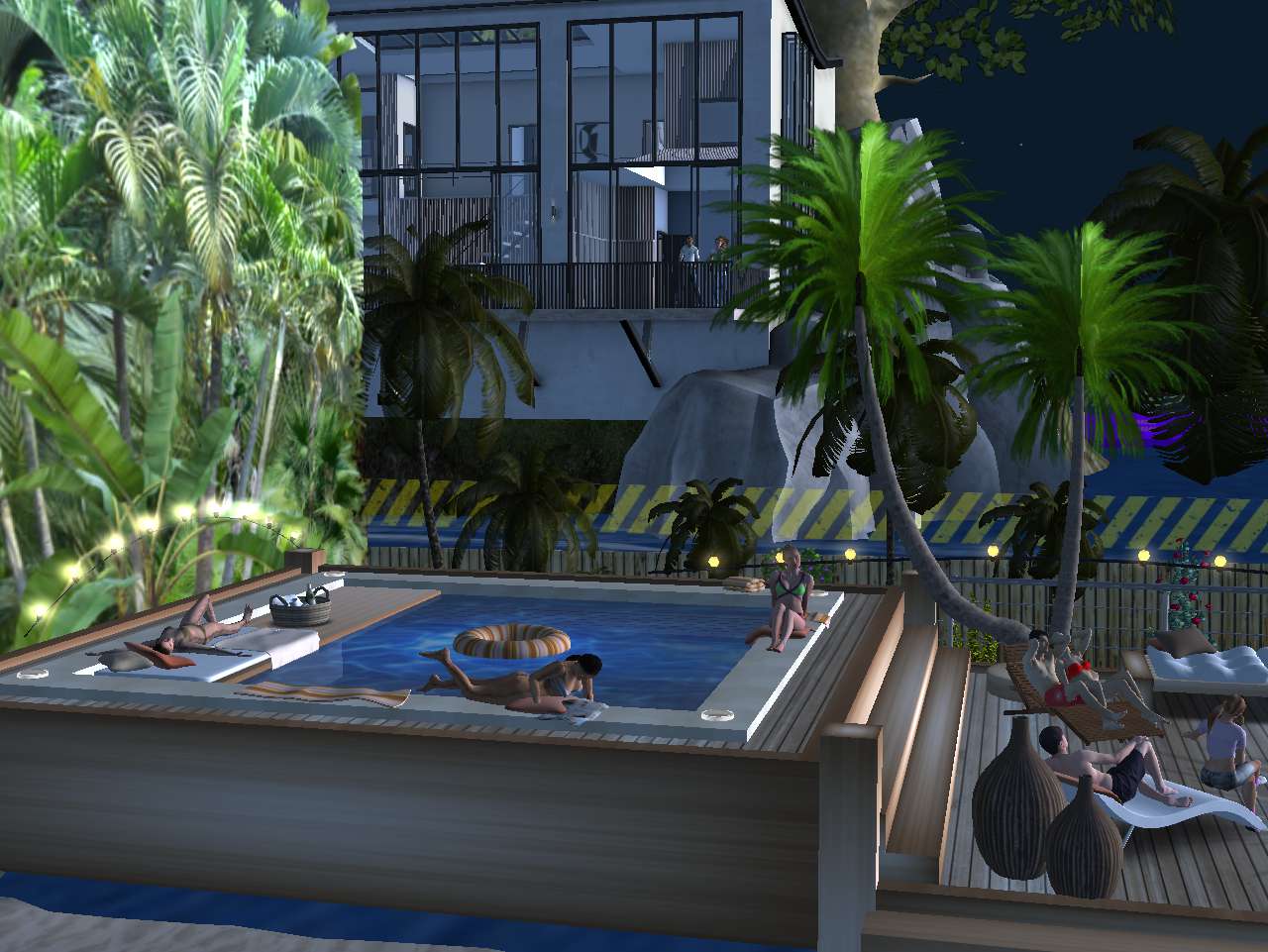 Like Laura and Clemenesta behind them, they were staying at the Foxy so-as to be close to church and emergency worship sessions, etc. Because definitely their soul needed to be saved, they felt. Jesus let them down — was cut off — because he and his clan were missing the 4th, the yellow some say, others: green. The 4th is the shadow, the thing not wanted to be dealt with. Yet all 4 embraced it; began having private TILE meetings in the old Video Days Rental building where it all started, over in the Black Diamond part of town. Never mind that the place now sells tattoos. Definitely part of the magic! 100 lindens per week rent well spent, especially split between the lot of ’em. A secret door connected the 2 parts.