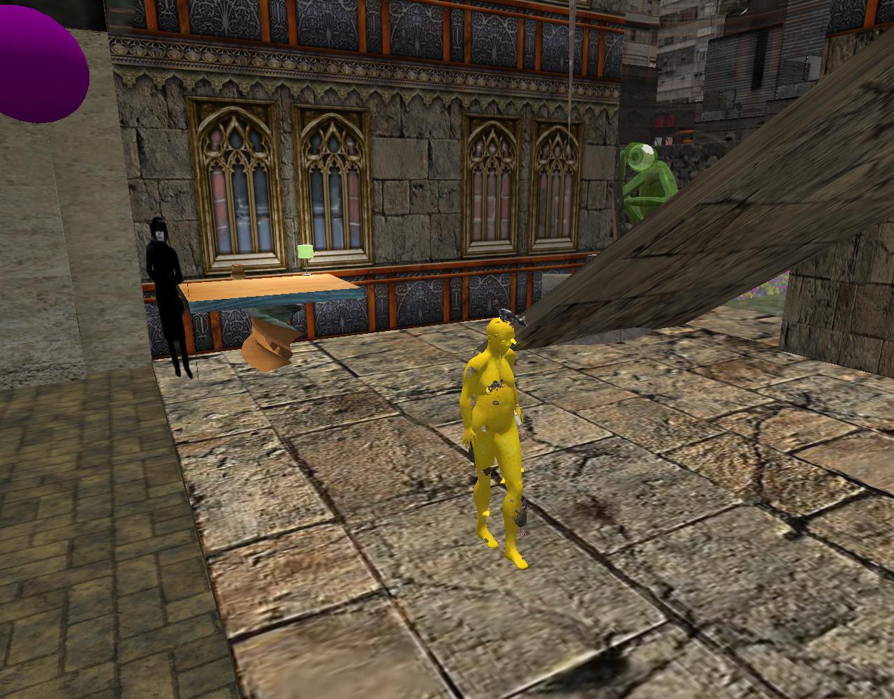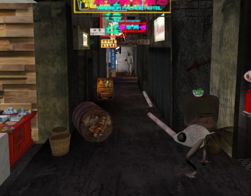 … as in Benny Right Horn. Right outside after learning of the secret passage from Windsong Fairy, left bleeding out in the portal stream after a scream — that Rebl picked up on. Attracted by the guitar of course, which Benny played splendidly this morning after warming up quietly all night. She had to show up. She had to proposition again. Like with Douglas (successful), like with Carolin (not successful but she’s still working on it — *was* working on it). Benny knew she couldn’t resist. He’d get the information out of her just like he did with Big Ass Franz down at the bar. Both dead, it seems. Benny had to make sure Franz didn’t contact the cat-people to warn them. Same with Windsong Fairy — couldn’t take a chance. And here he was. And there they were: trapped. Does this particular photo-novel have a happy ending? Or a tragic one? Only several more posts to find out!