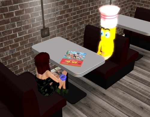 “And I can *talk* to you without those blasted *hearing aids.* Everything points to you being Ruby yourself. Well, not *that* Ruby necessarily but *our* Ruby, the one that blew up *our* New Island at the age of exactly 15 1/2. Now keep that in mind when I read some notes Scotty sent me along with the (‘666 Satan’ texture).” Eraserhead Man pulls out a small notebook from his pocket. “Let’s see. Okay, this is from a combination of several sources. Alright: ‘Set in the near future, it tells the story of a teenage girl named Ruby Crescent who wants to become a treasure hunter.’ And then he goes on, um, ‘(She’s) a teenage girl of *15*’ — *our* Ruby’s 15 and a 1/2. Can’t get any more 15 than that.” Eraserhead Man flips a couple of pages in his notebook, then: “So there’s mention of a 4 year *timeskip*, just like New Island went though. Again: *our* New Island, not the one out in the middle of the Indian Ocean. This is Our Second Lyfe we’re talking about here. But — this is important too — *that* Ruby, the ‘666 Satan’ one, aged. Turned all voluptuous during those years. *Our* Ruby never changed. She remains, well,” and here Eraserhead Man cups his yellow cartoon hands underneath his breast region. “No real *b’s*. Apples in Preston Weston speak.”