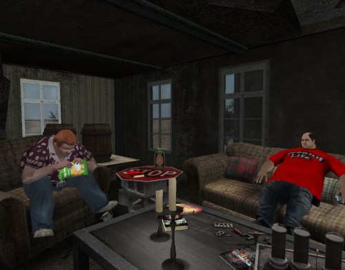 “And that’s what brought me here, to the tree, to the *mutants*,” he said to John the Mind Reader still sitting opposite him in the present, drinking his coffee, still enjoying the beans. “Spill some more,” he requested, leaning back, carefully sipping at this tilted angle. Sometimes just the mention of the word triggers the event, he knew. The others finally arrived, the lot of ’em, crammed altogether in a lime green truck with Dude on the side and Chevy Dodge on the back. Joker and Jester, Jethro and Bauer, Doug and Clyde (formerly Tin Tin and Clubby). Paired troublemakers all. Liars to the hilt. They say caffeine makes you so if unchecked by alcohol. And there hasn’t been a (wal)drop of beer wine liquor in this levee type of place since January. And then: Jackson Bloch riding tailgate, the strangest of them all.