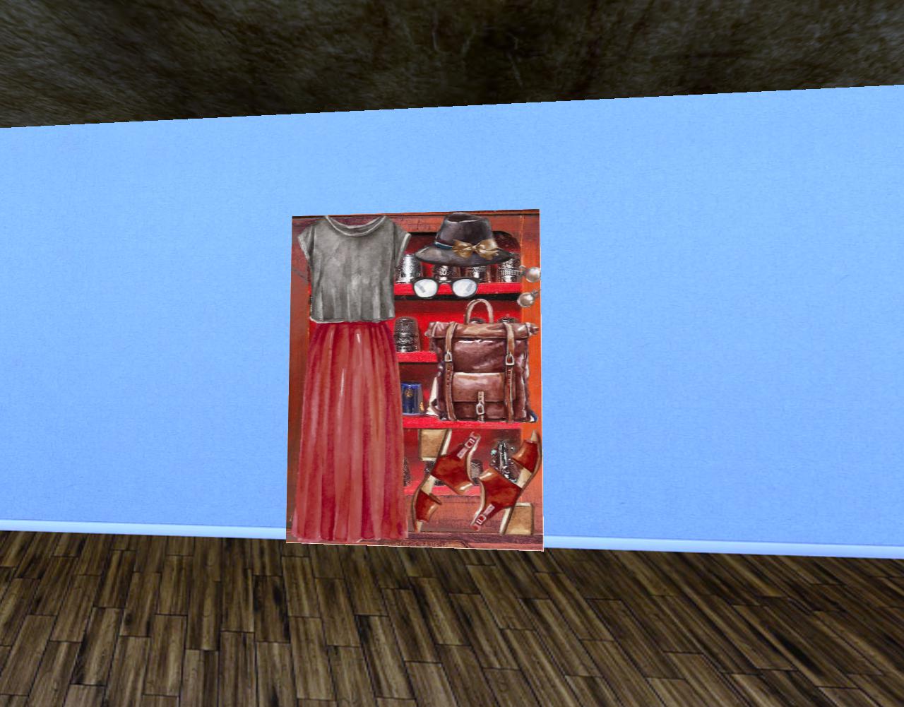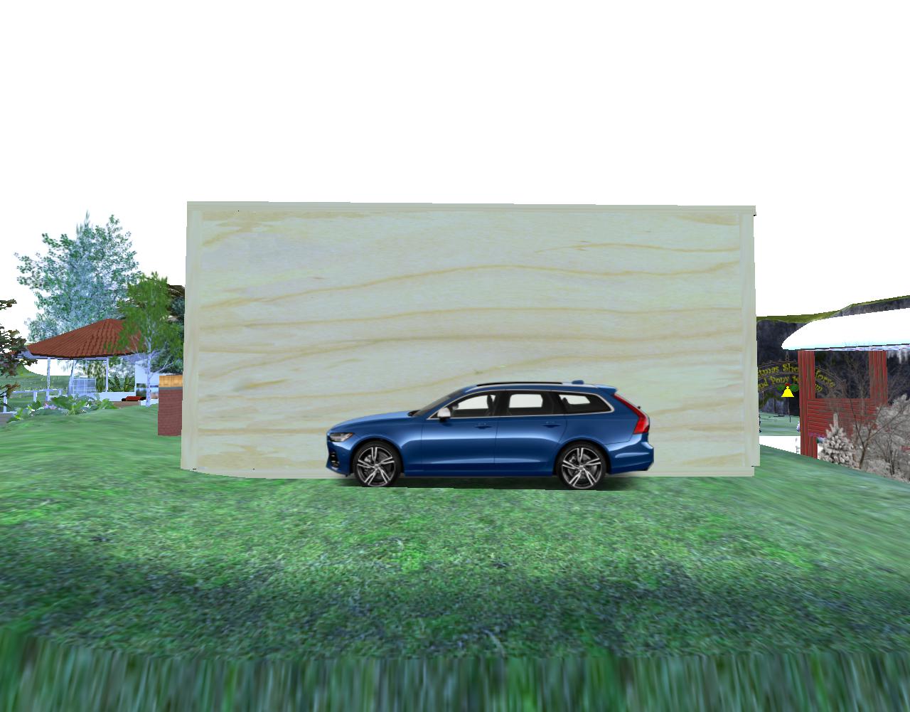 I’ve created the bare bones of a consignment store on my Rubi property not seen since the very beginning of this here photo-novel, number 22 in a series of 20. The first thing I decide on to fill out the 4 square emptiness is a Volvo station wagon, which definitely does *not* have two handles on its back door nosiree.