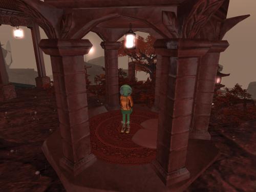 I’ll probably spend the rest of this here photo-novel tracking down a select group of past characters and try to convince them to come join me in Somoco (Soos Mountain Community), my new home on the Jeogeot continent. Like Karoz here, enjoying the view in a revamped Wendy sim. I’m not sure I’ll be successful in prying him away from all this.