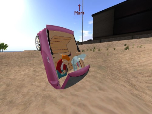 “It’s not the car,” his robot friend returned. “It’s the world. Physics ain’t good here. Language neither. Equilateral gravity is better for locomotion. This is just loco motion. Get it? Loco… motion.”