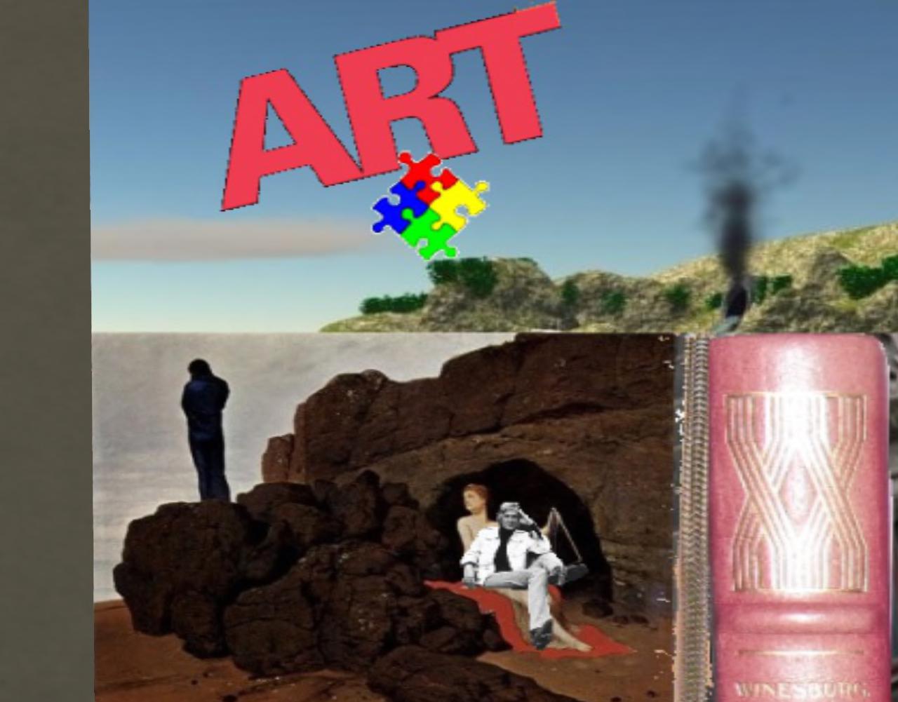 Big nosed Achilles T. Pippins studying the next collage over suddenly sneezes and everyone in the gallery and more becomes infected. Stay safe out there!
