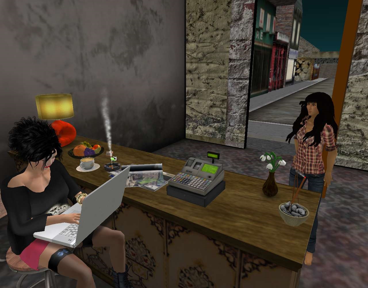 “Who would *want* that?” Still leaning, still just above a whisper.
