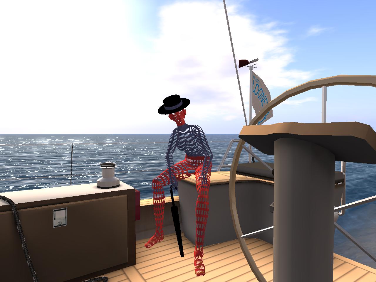 Ms. Frame, a near neighbor of the sad Mrs. Fogg, almost always forgot to put on suntan lotion before sailing, thus her condition at age 36. She at least carries around a shading umbrella these days, but too little too late if you ask me. Ms. Frame is also widowed, having lost her husband to the ’78 land sharks revolts. But, unlike Mrs. Fogg, she remains upbeat and breezy despite her misfortunes, and is a devout member of the 2nd Fries With Cheese Church down in mid-town. Drop in any time for tea and cheddar biscuits she told The Bakers just last week.