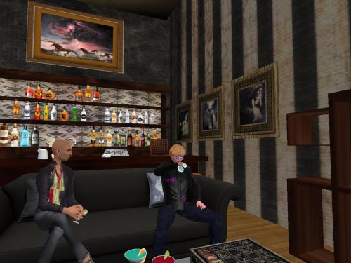 But they didn’t go through immediately. The Musician returned to the chair beneath the Ear/Bar sign, testing out if he could see the doors from this perspective. He could not. However, upon going inside the bar and sitting down on the couch, the doors were in plain sight.