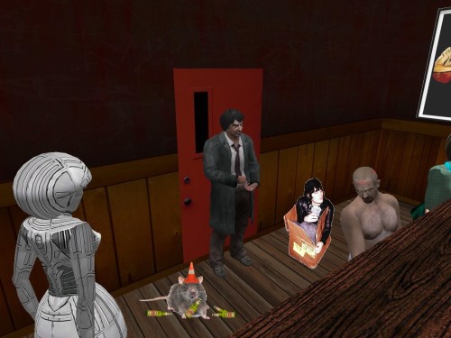 But I forget. Mary, the third member of Lamb to add to Peter (different from Peter Ladd) and Paul, is already here! And so is hubby Pitch Darkly. They’re established at Darkly Manor, their old home from Collagesity back in the days, back when it was set up right next door to the sacred Rubi Woods. Through a transparent upstairs wall they could stare directly into the many linden trees, the cypress 1’s and 2’s, the eucalyptuses, and, most mysterious of course but only occasionally, perhaps only that one time, Unch himself, the fabled 200th tree of the forest, the one that has the ability to uproot itself and go walking about the place. Being a Linden creation and thus supposedly permanent, the forest is still there. Just not Collagesity. The also sacred 97/97/97 spot that once united Collagesity directly with VHC City on the same continent of Heterocera is protected from alteration, i.e., terraforming from the outside, the thing which ruined the parallel 97/97/97 in VHC City, psychically uncoupling the 2 burgs.
