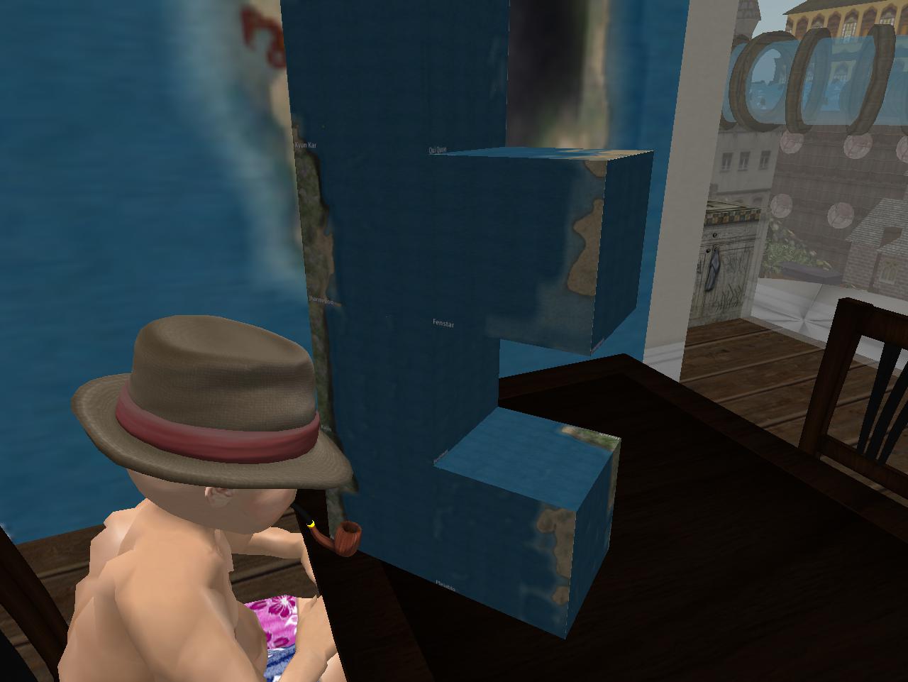 Mr. Babyface has the impression that Shelley and her boat boys will be moving out of the top of Kidd Tower soon, tired of the limited space there. Soon, then, his dining room and his staring chair will be backed by (the map of) Zebrasil not Xilted, as he moves out of W (lower) and X (upper) back to Y (lower) and Z (upper). That’s his hope.
