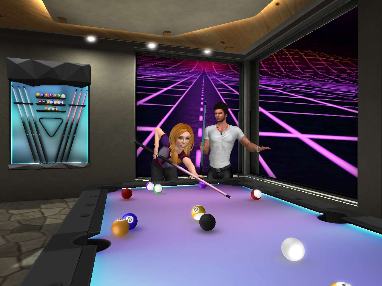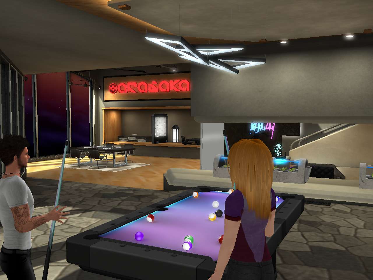 They sit outside and watch the pink sun come up to start a brand new cyberpunk day. “Fancy a game?” she asked, knowing Edward wouldn’t mind. She’d follow 8 ball with cutthroat later on, inviting him back in to make up for the sudden exit.