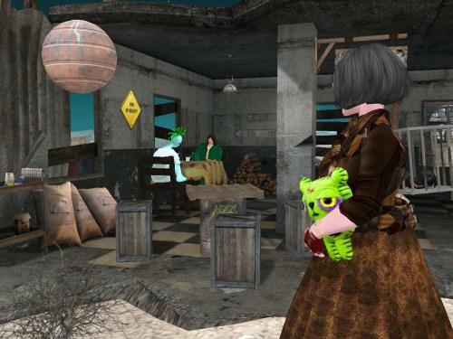 Taking note of the too-similar design of this Rodentia sign with that in Sandy Shores, GTAV from the post before, we send Philip over to sit beside it, if only in a dream. He could be waiting for Wheeler (and perhaps Newt?) to emerge from the “rat hole” across the small pond in front of him we saw in section 01. Yes, there she is, waving at him from what was formerly the entrance and is now the exit, certainly glad to see daylight again however gloomy it may be. “I made it back, Newt!” she calls over to the shadowy figure whom she mistook for her oft times hubby, last seen sitting in this very chair 5 sections back.