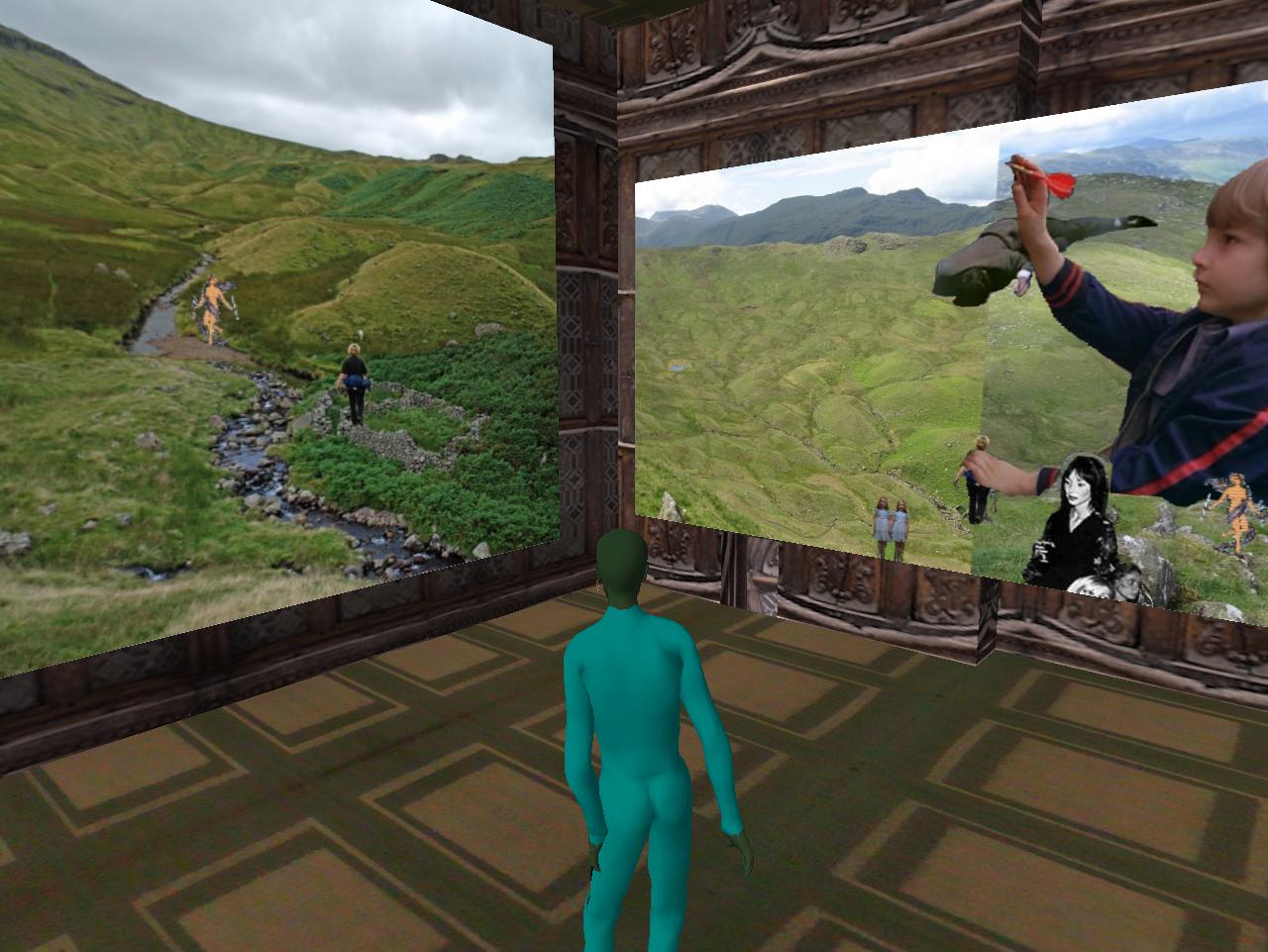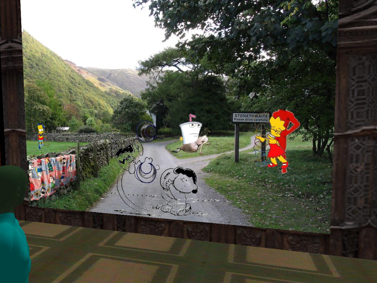“Alright, I’ll take your word for it.” Karoz was trying not to get sidetracked still. “But that’s where the opening occurred before,” he repeats. “I just walk into the collage and I’m in Stonethwaite, just like [I did] in Noru. I can talk to Story Room that way; get their story. Hucka Doobie says to talk to the one without a head, so I’ll have to check that. Might be the blue guy.”
