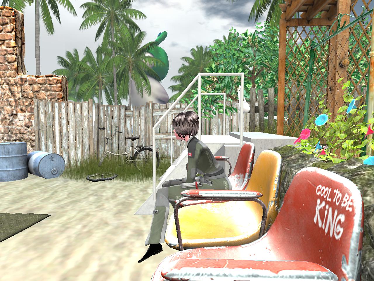 I watched a helicopter land in the strait between the islands. It didn’t stay long enough to make friends with the pilot. Thatch might be the only avatar I talk with this night.