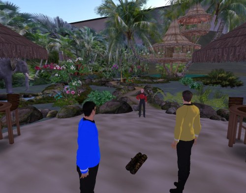 From the vantage point at the top, Jeffrey Phillips takes in the sight of Captain Crazy’s noisy, dirty trawler pulling into the small harbor of the town. Here was a man who might know something. So it’s back down off the hill for Jeffrey and into the tavern where he sees him and his men — well, man — head into. Cpt. Crazy use to have 8 men working on his ship but now he’s down to 1 thanks to the Child Labor Board cracking down on him last Fall. The only one over 18, heck the only one over 12. Here was a man who not only bent the rules, but turned them into salty pretzels to consume after any drinking jag. He was crazy, yes. But he still was probably the sanest man to visit Half Hitch today, what with that loonie convention going on over at neighboring Nautilus Island (yes, there is an island named Nautilus in addition to a continent, although the island and continent are next to each other and Nautilus Island is sometimes included as a part of the Nautilus continent, logically enough; but it causes some confusion, even to long time Our Second Lyfe residents).
