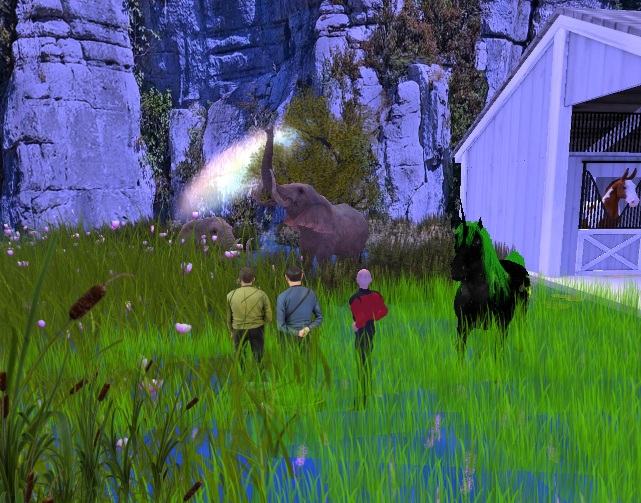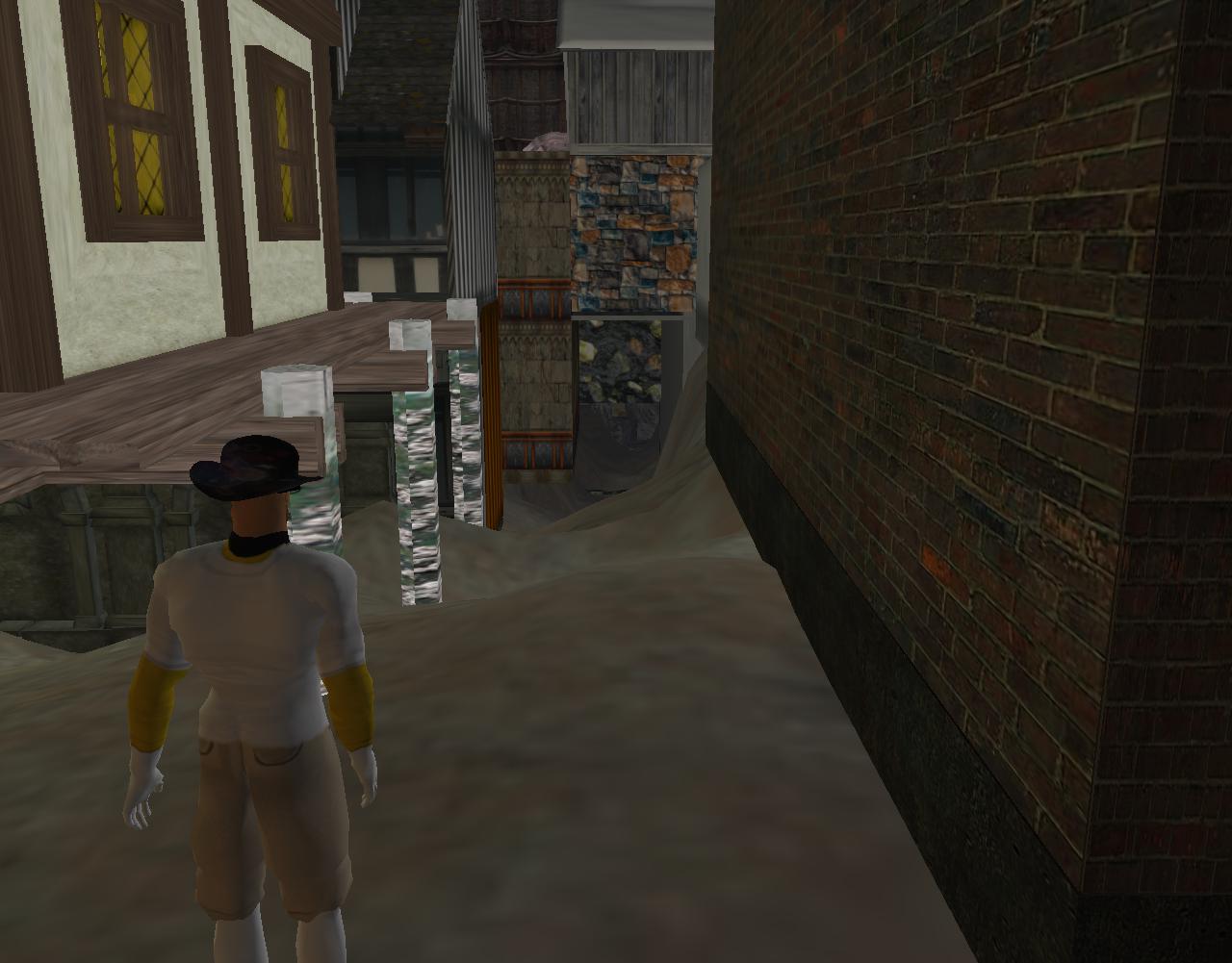 Let’s not worry about those Nautilus loonies nor go into any details on why they’re even crazier than Crazy. Half Hitch is definitely not a part of any Nautilus, although it lies, like I said, just beyond the southeast corner of the continent, and also just beyond the eastern edge of the island. It’s similar to Castle Valeria just past the northwest corner in this way, since that sim wasn’t part of the original Nautilus either — it’s an add on. Let’s just move into a dialog with Crazy to dig up more information…