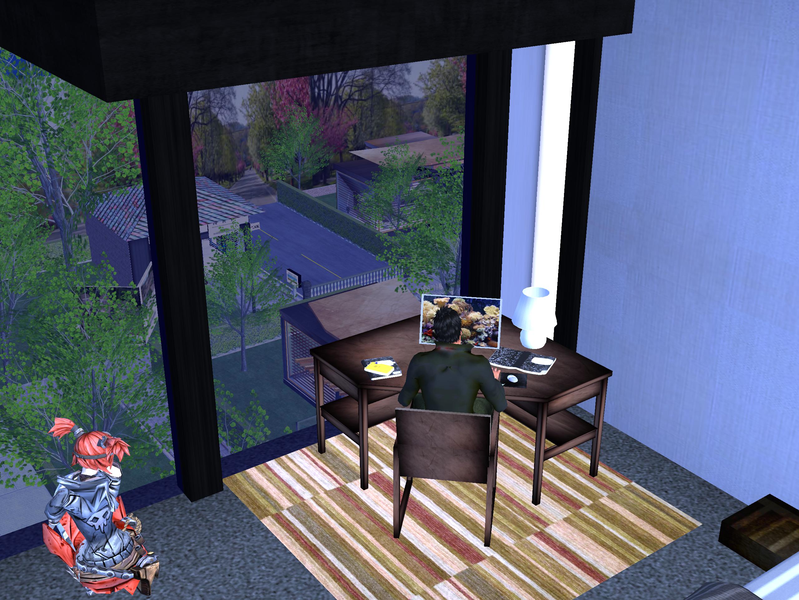 “His own”, she answered, then just vanished from the couch after flashing him some weird sign, he observes. First a V with one hand then a V with the other with the first still held up, then joined together. VW… V or Val’s World? he ponders later.
