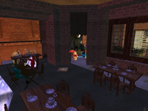 And how appropriate his table is now 3 floors down from the top of Kidd and thus displaying the Xilted sim on its side wall as well. At the top — his former upper floor again — Shelley has (XY*Z*) Zebrasil, very close to a volcano that had just gone off. Can he recover enough to go at it again the next day? You betcha! Yet another perfection and directly related. Little e to Big E, you see. TILE talk.