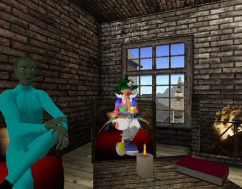“The place: BIONaz Gulch (sim) next to Snowmass near Woody Creek. Colorado. Woody Woodmanson loves Snow — comes from that land and sometimes hung out with fellow native Snowmanster and then seems, later on, to himself animate a snowman after moving back to Collagesity with the rest of the Baker family in photo-novel 04.”