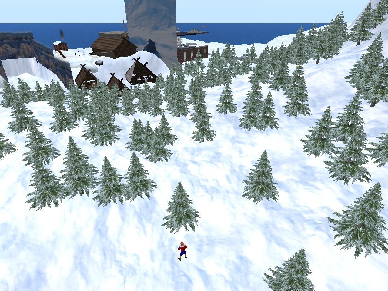 Before she knew it, Woody had run ahead of her and dived off what appeared to be a bank.