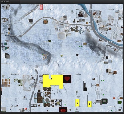 She then goes outside through Blocking Shrub, takes a gander up and then down the main road bisecting 7 Stones.