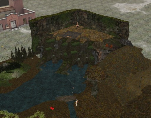 But the fact that this was a landscaping sim interested me (like Threesun sim) since the great majority of Nascera related sims are instead populated to the brink with residential houses (Linden homes). I pondered what equivalent sim might be on the several other Nascera continents, and quickly came upon this: Tam Lin, with some more interesting landscaping going on. And the point of a *heart* shaped pond in the middle.