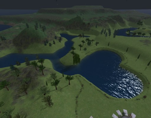 Upon visiting, the “Hill” part of the name confused me since the sim seemed totally flat, but I discovered there is a raise area in the southwest corner. Perhaps that’s what the Mossy Hill namers had in mind, and it is greener than the flatland to the northwest, green being the color of moss.