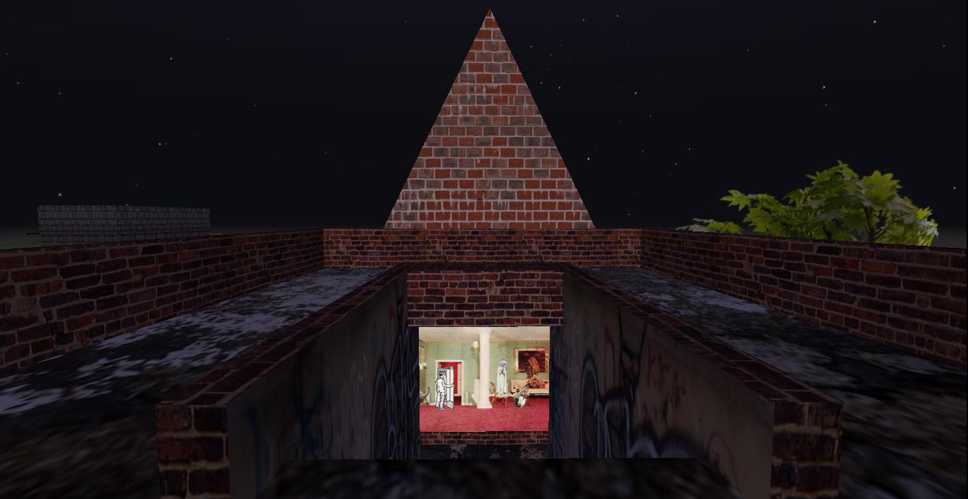 I should mention my Noru land purchases immediately after selling the Hector property. These include a 1024 and also a 512 along what was then the southwest part of my Noru holdings, giving me a nice 72×64 meter space to work with. Without these purchases I don’t think Collagesity could have flowered into what it has become and is still becoming. Fate. These purchases eventually allowed me to create a *middle* row of structures between a north and south row, and this seems to have made all the difference. And the design of this middle row is basically an import from Rubi’s VWX Town — another sharing — copying the lineup of Bodega Market-Coolie Building-Stairs Gallery east to west again. A quite direct comparison with VWX Town can now be formed: Orange House can be seen as a very shrunken down version of the Table House, for example. More on all that soon, perhaps. There are a lot of VWX Town structures that don’t exist in Collagesity. However, many of the ones that have been developed beyond a shell structure (empty state) have been resurrected. True, we have no Temple of TILE, no Blue Feather Gallery, no TILE Tower, no Sink Lair. Yet what we do have seems even more pertinent for present times: the Kidd Tower, the Noru Museum (which didn’t even appear in VWX Town), the Stairs Gallery, the Norum Gallery, and of course the 3 large galleries with my collages, Toxic Art, Power Tower, and Fal Mouth Moon. Those form the axis, with the recent collages of Fal Mouth Moon more front and center than the others. Like I said, collage is the focus in the brand new town. Collagesity.