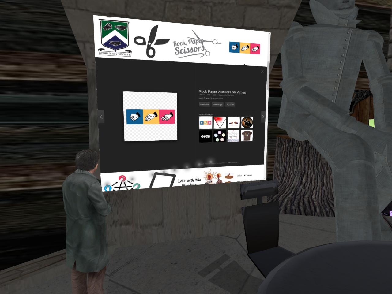 Old Mabel was confused. She set out much earlier tonight to track down a sighting of Keat Owens in Sansara’s Langdale sim, but this *twin* claimed never to have visited or even hear of Collagesity. Old Mabel asked his name. “Pety” returned the person. Obviously not Keat Owens, then. While in the hotel room he inhabited Old Mabel looked around for further clues about what was going on. A blue feather pen attracted her attention, but she was on the wrong path now. Pety also mentioned something about a thimble thief. Old Mabel will do more research on that.