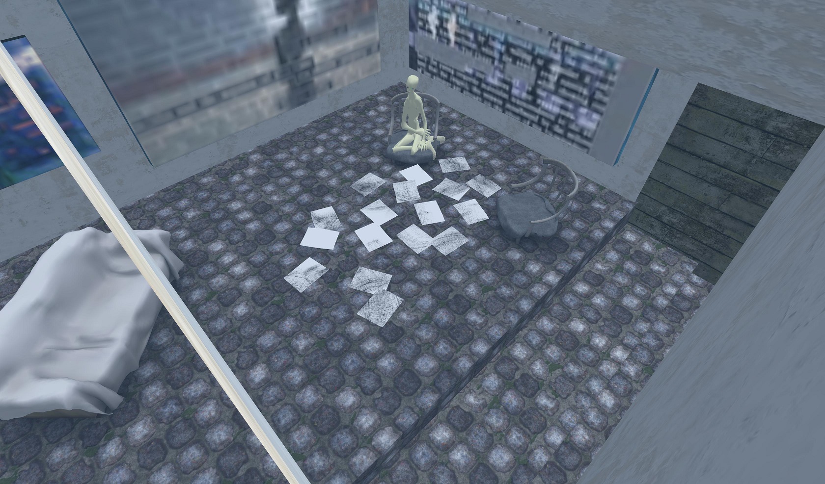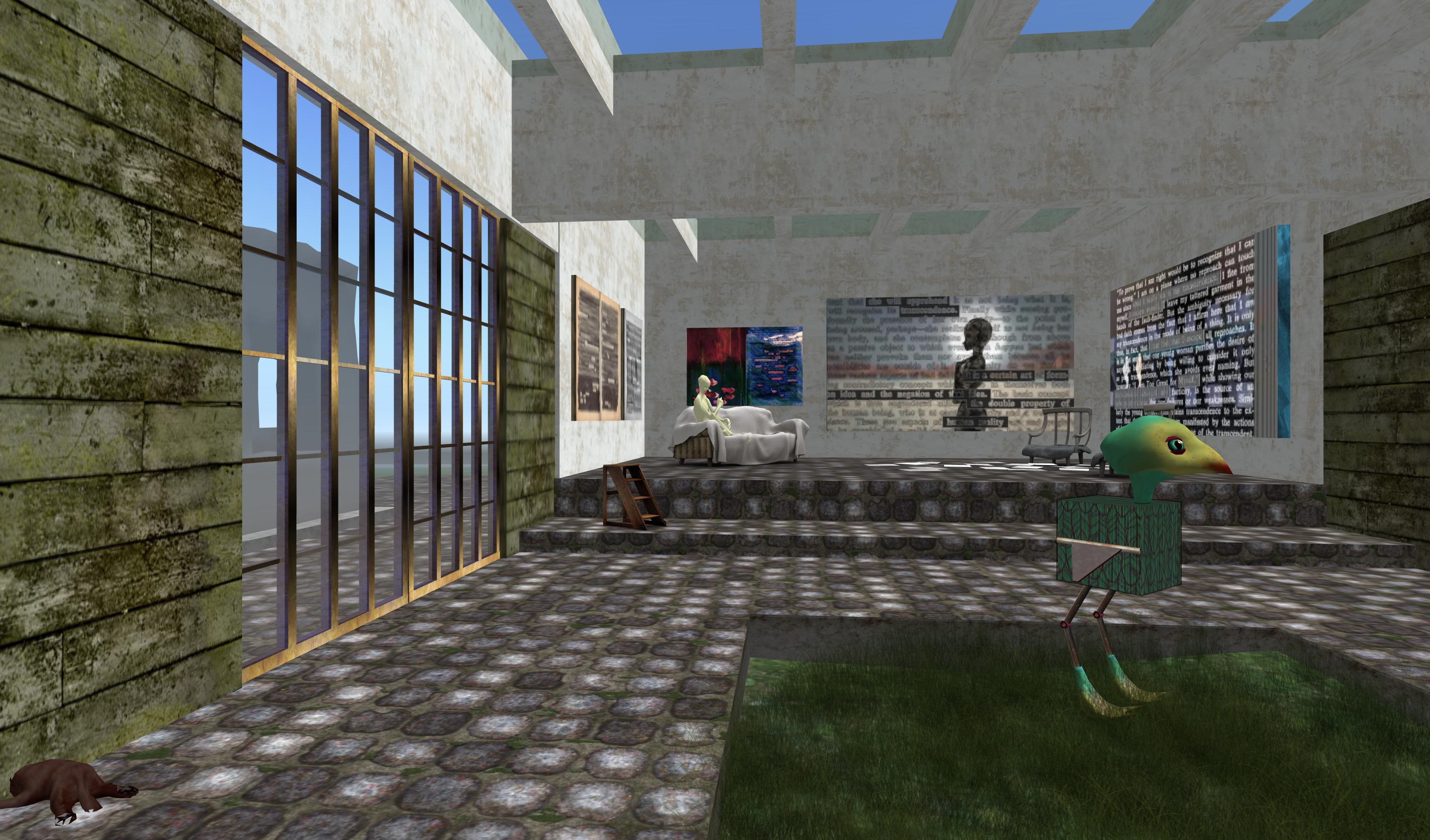 Through my avatars, I often like to teleport directly into the center of a sim that’s caught my interest to initiate further investigation (if desired). Using this method proved fruitful indeed for Wyrd of the Maebaleia or Satori continent. Inhabiting the ghost of Bracket Jupiter, I found myself also in the midst of my former neighbor Art Oluja’s “Art and Weird Words” parcel previously mentioned in this September post. I began to unlock several mysteries that had been haunting me…
