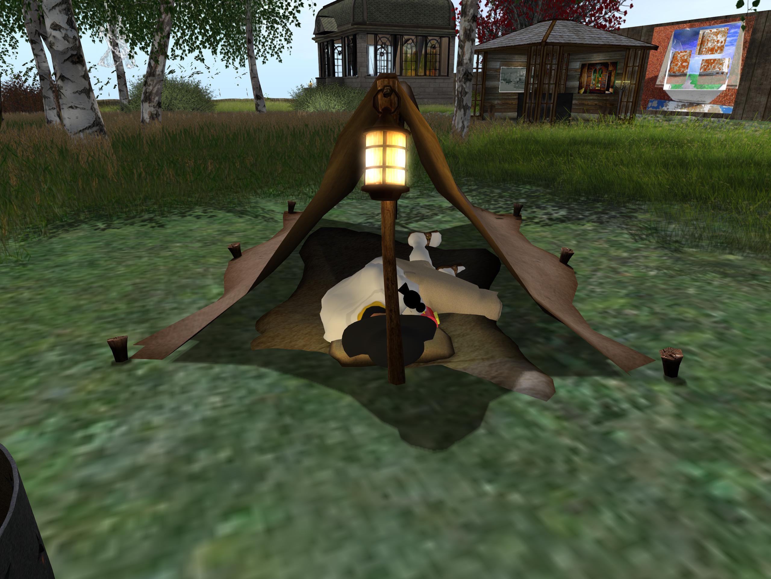 Karoz became an exploring partner for Baker Bloch after the family’s move to Jeogeot in May 2009, often checking behind him for the purposes of writing and editing blog posts. From our position in Noru, he fairly quickly made his way down to Chilbo several sims away… and discovered or remembered that he was *originally from Chilbo*. A wave of memories swept over him, as he’s explained to me. But it was not the then current Chilbo he remembers. It was a different one, a split off version. A version he remembers being called Chilbol and, originally, Chilbolton or Chilboltown. Traces of this version appeared in the town banners, which read “Chilbo!”. The “l” had been changed to an “!”, but Karoz received the message. He realized the split nature when he was hit by a mortar shell from a tank passing through Chilbo, and was temporarily derezzed from our virtual world. Our user’s screen whited out. Karoz died, then came back to life. The alternate reality had been set into place. He recalls Chilbol. He remembers the Noru that was named Norum instead. *Norum* was the larger entity at the time, not Chilbo. Chilbol was the satellite. And his surrogate mother Sapphire was queen over all of Jeogeot. Sapphire’s shadow casts large.