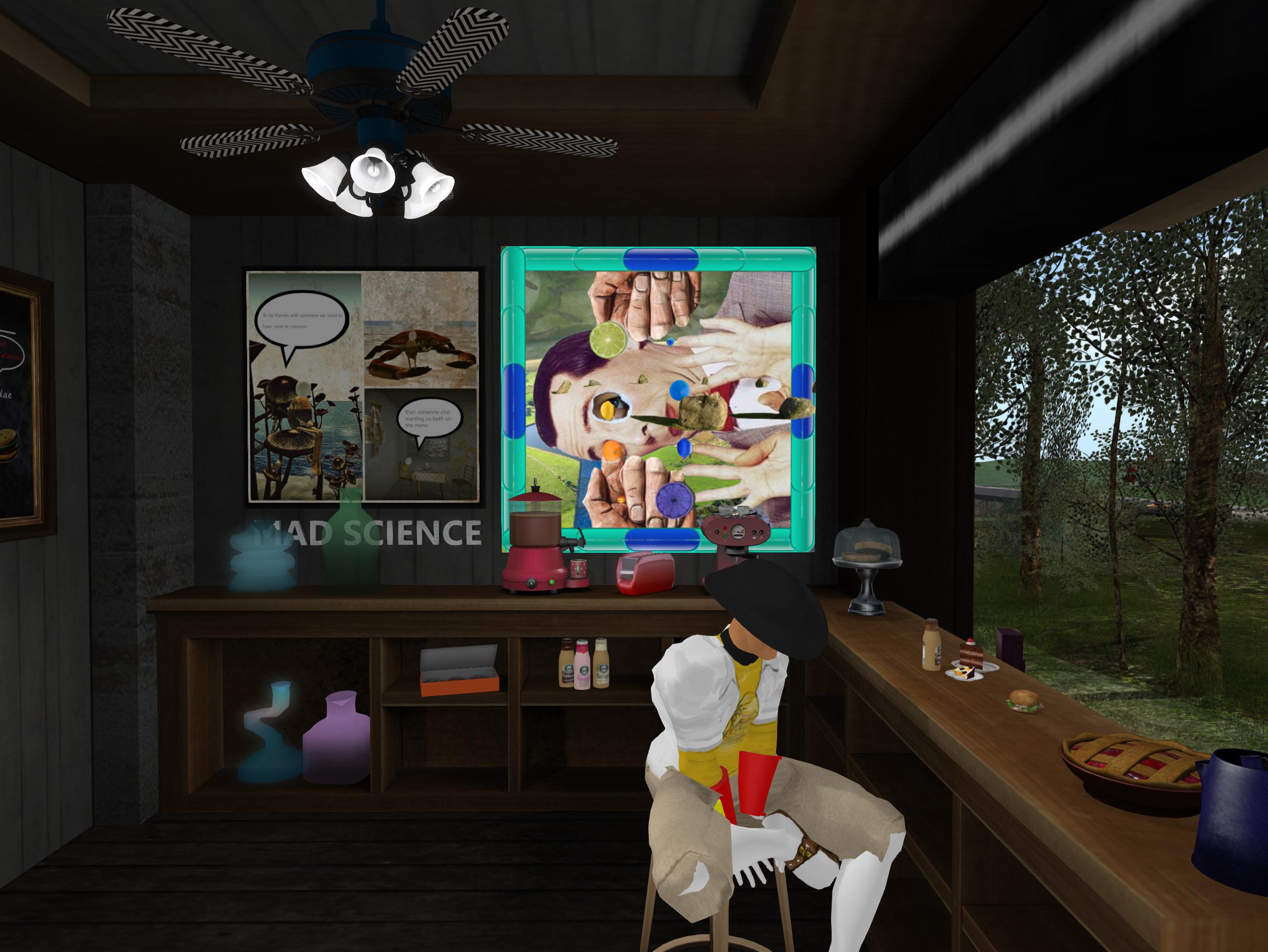 Anyway, Hucka Doobie was around before then, but Blinkerton decided to *enter* the avatar on a permanent basis upon dying in order to live on. And Hucka Doobie is still around in the virtual world, and Blinkerton is still with him. He retains these memories of the New Mexico surrealist/abstractist. The Hidalgo collage series gives strong clues about their relationship. But when Blinkerton entered Second Lyfe through The Body, things were obviously a bit different. He became kind of a child or child-like being to Baker Bloch and myself. We had to take care of him, since he was “new” to virtual reality. He was not native to this environment, unlike Baker and I. But then, perhaps during our stay in Second Lyfe, we, The Family, realized that Blinkerton was just as unreal as Hucka Doobie, and that *both* were created avatars. Isn’t that strange? After a period of despondency, Hucka Doobie plugged on.