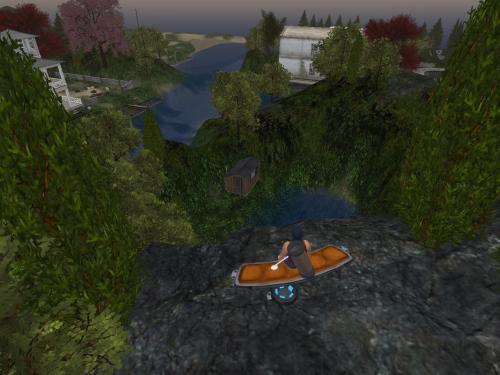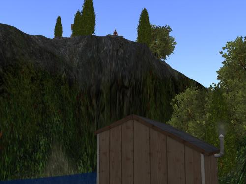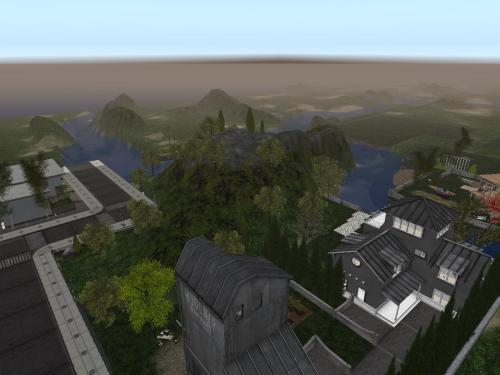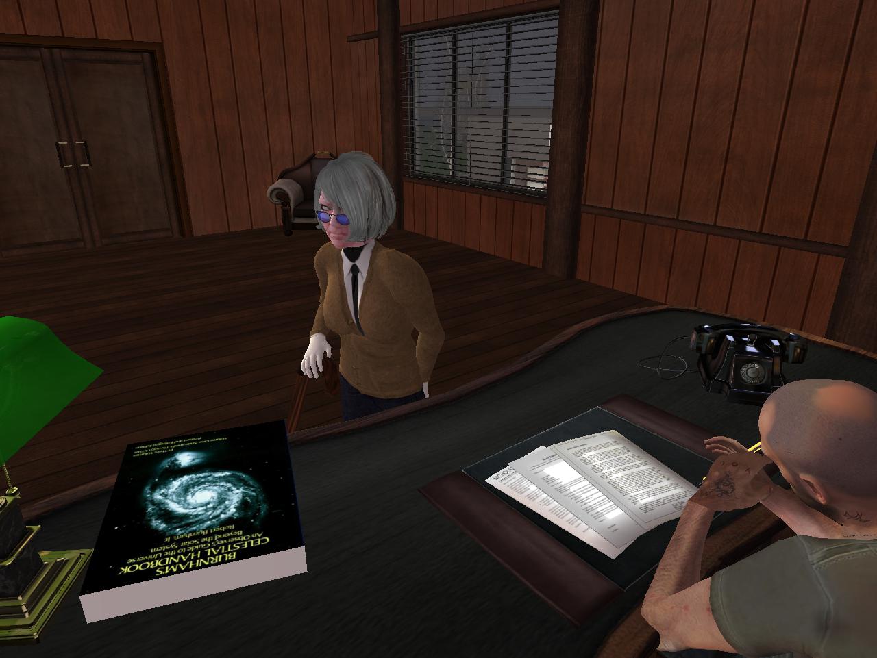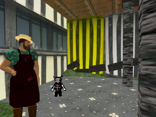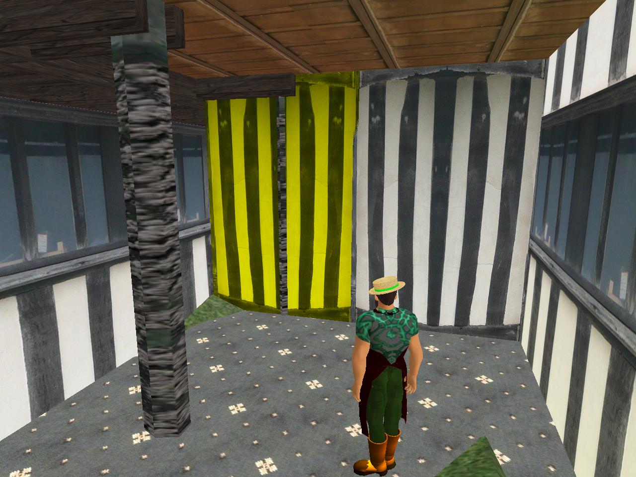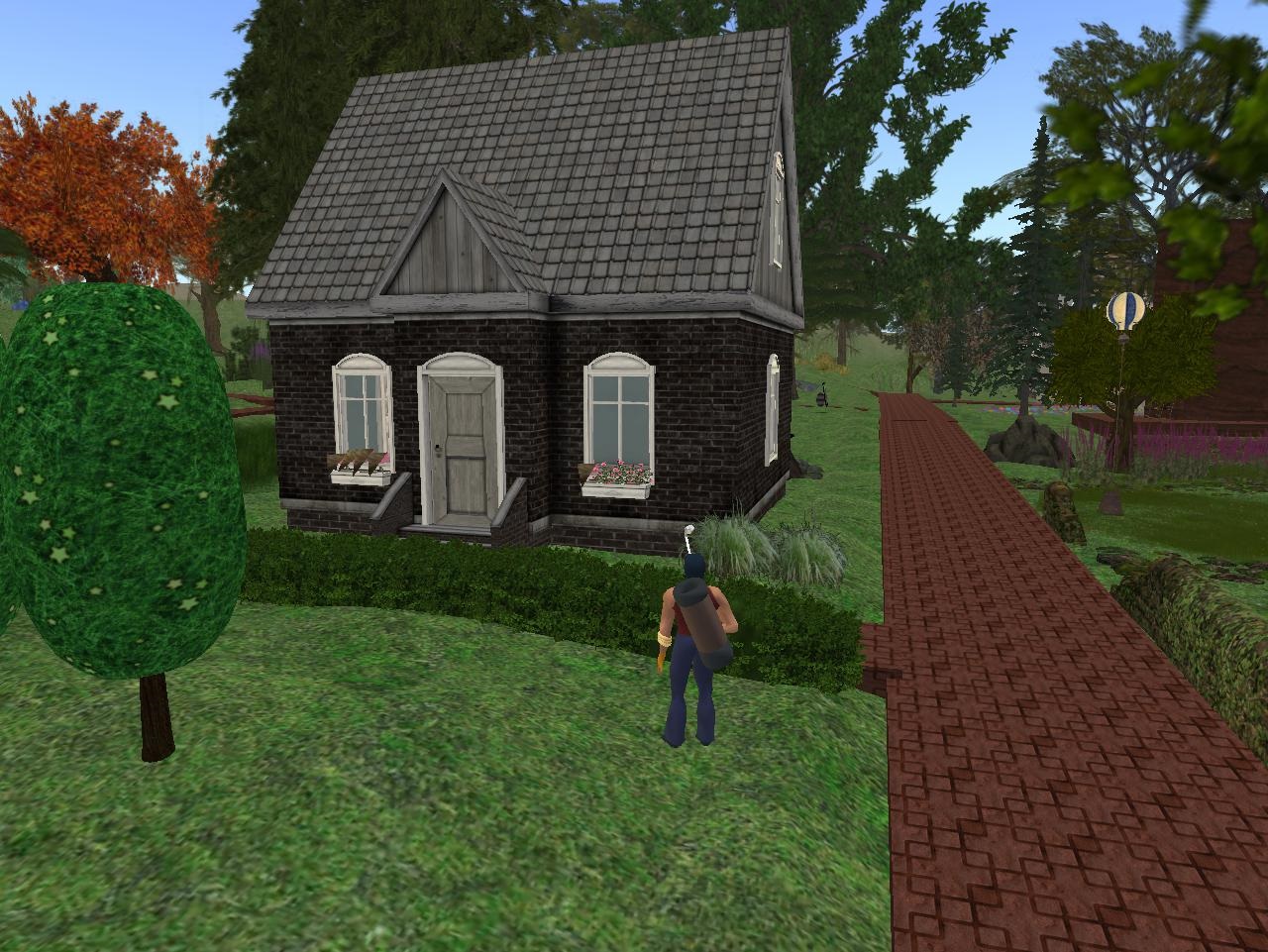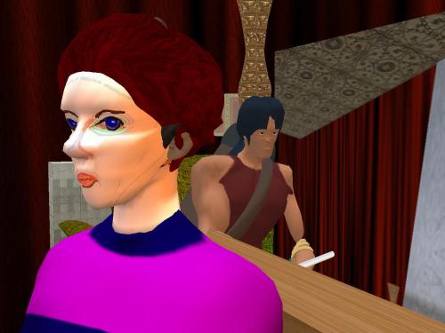 So Phlip Strevor helps Heidi point the bulky cannon atop Raven Manor the opposite way from whence they just shot it. Heidi merely got stuck around the tower spire he stares at in the above snapshot, unable to enter banned property in that direction. Checking the inworld map, Philip agrees a northeast trajectory may prove more fruitful.