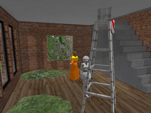 She got the call around 9pm on Thursday. He offered to visit with Tronesisia at her cottage the following week to discuss his recent contact with Bendy. Work obligations prevented an earlier meeting. She couldn’t wait. The robot lady took the 2pm passenger line from Hooktip to Lapara, arriving an hour and a half later. They rendezvoused after Peter got off work at 6 in an interesting, narrow elevated park of the partially urban sim.
