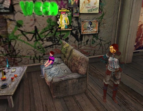 “Yeah.” He looked around the room. “You could have Satan’s spawn just have their run of the place. Only 50 lindens a week. We could get a better place. Not on my side of town,” he elaborated. “Nothing going on over there.”