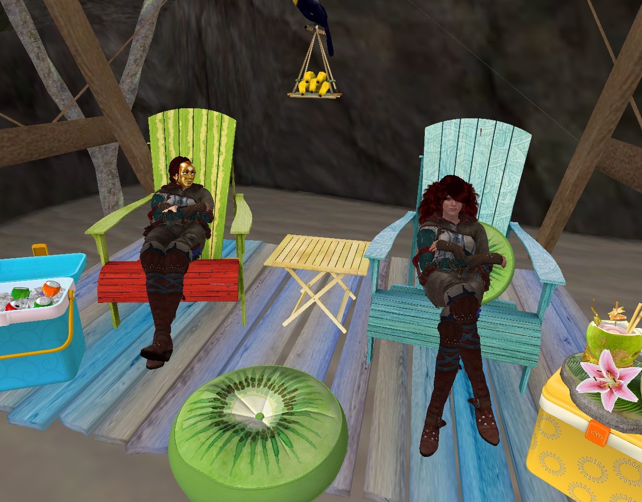 “My– my kingdom or queendom thinks me bananas for hanging out around mainland, let alone *here*. Bananas, I said (she nods up). That’s my attempt at a joke to lighten the mood.”