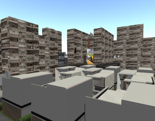 Well, if they don’t like the present neighbors (and they *do* have neighbors themselves — more on that soon, perhaps), there’s plenty of other places to live here. No land for sale in the area, though, except for one small 512 going for 58.6 lindens per square meter. By contrast, Baker Bloch paid an average of about 0.7 lindens for the land he set up 7 Stones on about 5 months back. So: expensive! Way too costly to contemplate another purchase, even if he had the tier freed up for it. So this is strictly a rental scene for his extended family, to tell a story about a burg much larger than 7 Stones, and its promise but also, yes, failure to live up to expectations. Rows upon rows upon rows of apartments, a strong police presence, pockets of interesting neighborhoods. But not enough, Sandy had determined a while back, and now with Merry Gouldbusk joining in the lament. Not enough to ultimately survive.
