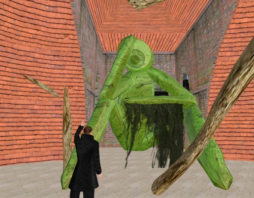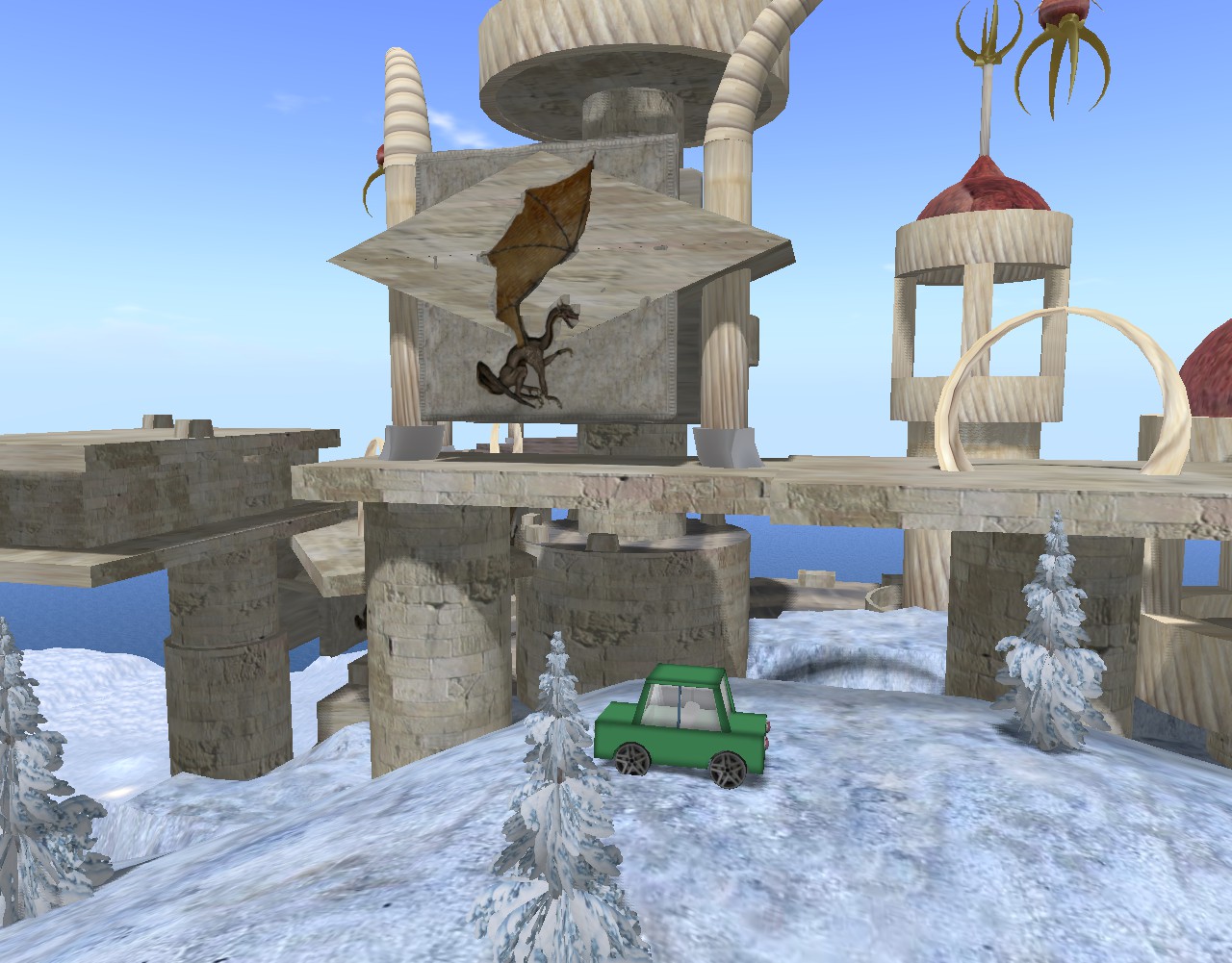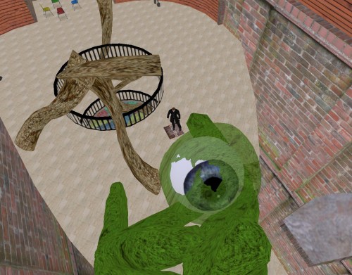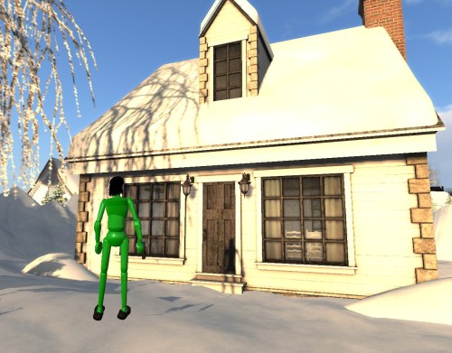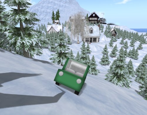 Core-Alena had had enough. “This will *not* do,” she-he exclaimed, almost up to his-her gills in snow re-terraformed from “default” by the owners of the new house over there. Yes, more avatars have moved into Purden, further distancing the sim from the pristine forest it once was. Core-Alena decides he-she simply must become Mobile again.