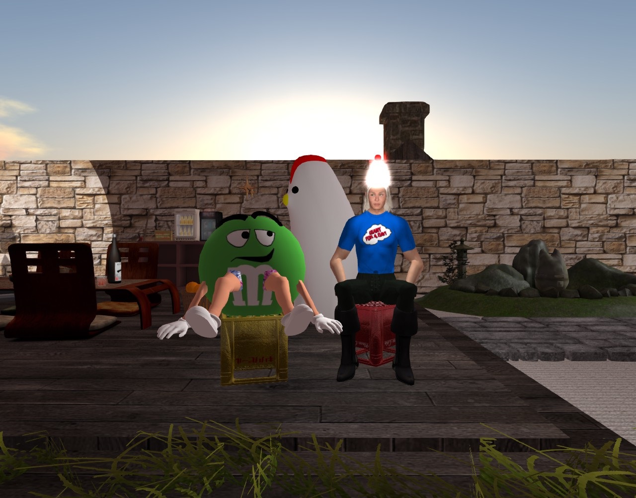 “Well what about his partner? That inverting guy?” Does Spaced Ghost guess he is actually Aqua Dude’s arch nemesis Super Guy on the sly? But at this point Spaced Ghost decides to use his own one, true superpower that we know of and make himself invisible, which actually means he’s teleported to another, local spot found on the inworld map. He has a one sim 100 meter limit.