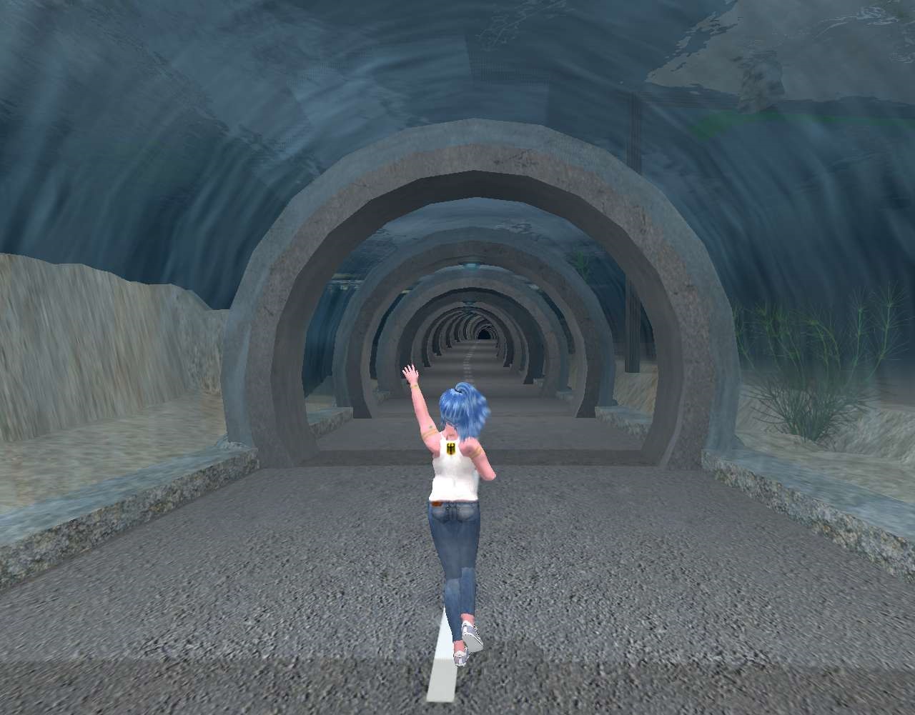 “Thanks!” she acknowledges through the transparent tunnel walls while continuing to motor along.