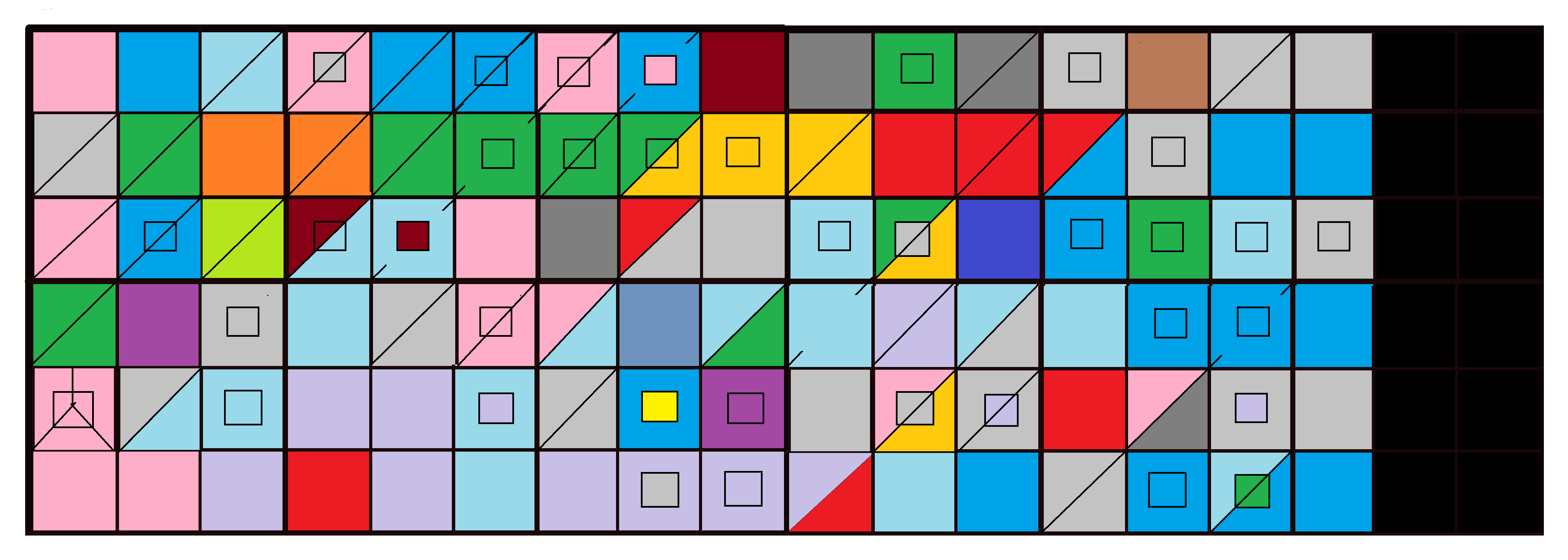 PINK =STARFIELD, BLUE = JEOG/NAWT VAYA, LIGHT BLUE = JEOG/RODENTIA, red-brown = RDR2, dark gray = ADC, brown = Wendy-Ontario (defunct), GREEN = BELLISARIA, red-orange = Haven, orange = Paperville, RED = HEARTSDALE, yellow-green = Omega, blue-violet = Jeog/NWES Cy, violet – Jeog/Korean Channel, blue-gray = Jeog/Fox County, yellow = GTAV, LAVENDER = RL/CALIFORNIA