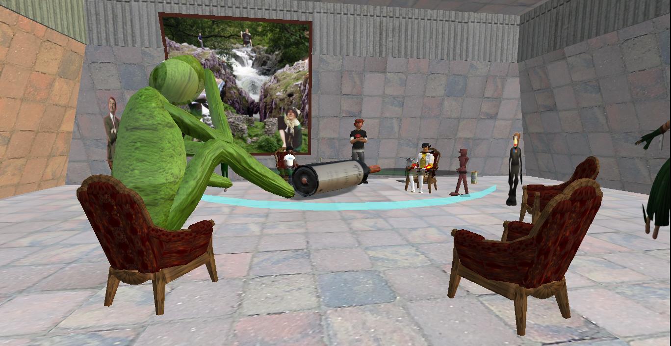 My neighbor’s tumblr site: Veyot’s View. She just opened up a pizza parlor (structure to right in above pic). Here’s an entry about VWX Town in particular — that’s Veyot with some of the town’s residents in the Church of The Diagonal.