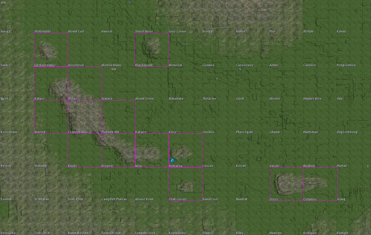 terrain map of Sunklands showing the 6 sinks; Otaki Gorge (lower central pink square) is where Pietmond existed